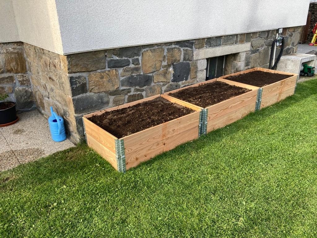 Ohrada pro zvýšený záhon je vyrobena z tuhého modřínového dřeva, které má například oproti smrkovému až o 50 % delší životnost.