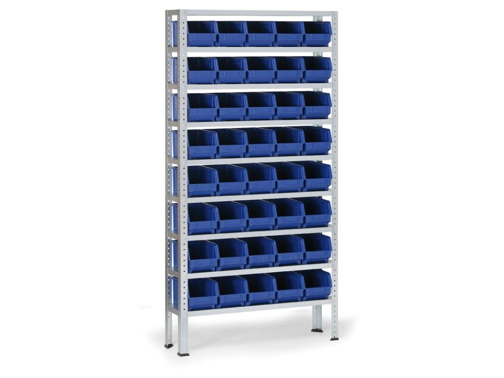 Regál s plastovými boxy BASIC, 1730 x 850 x 300 mm, 40x box B