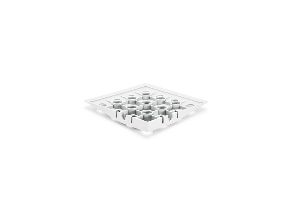 Nájezd rohový 137x137x16 mm je doplňujícím prvkem pro ukončení podlahové podlahy v rozích, kde na sebe navazují rovné nájezdy ze dvou stran. Plynulý nájezd zabezpečí bezpečný vstup a nájezd na plochu. Povrch rohu je stejně děrovaný jako základní deska, spodní strana je žebrovaná a propojená kanály, které zajišťují rychlý a trvalý odvod vody pod povrchem podlahy. Barevnou kombinací nájezdů a rohů je možné označit okraje plochy v souladu s bezpečnostními předpisy (kombinace žluté a černé). Součástí dodávky jsou 4x4 ks spojek pro spojení s dalšími prvky.
