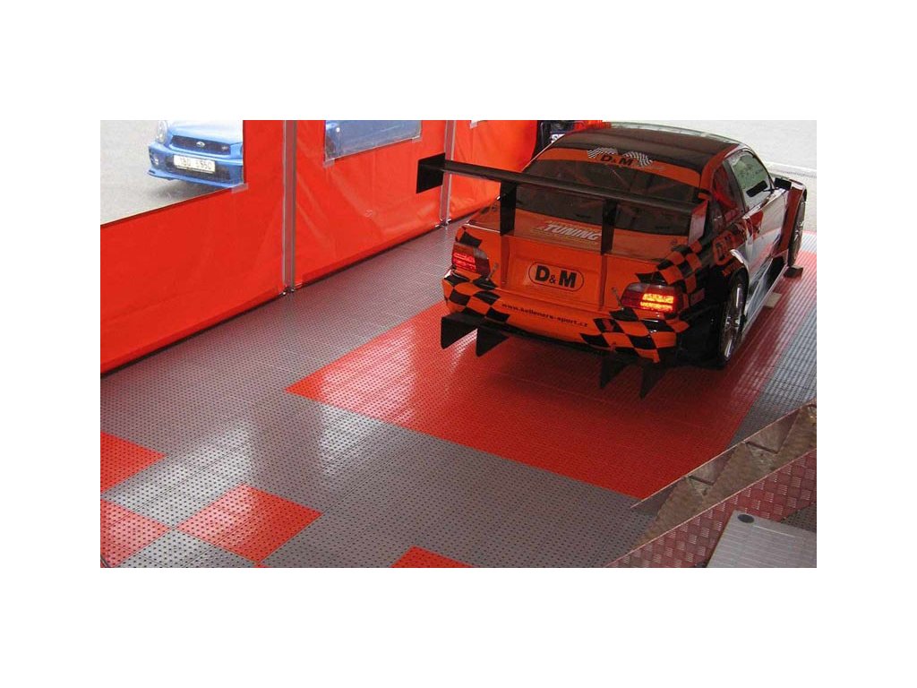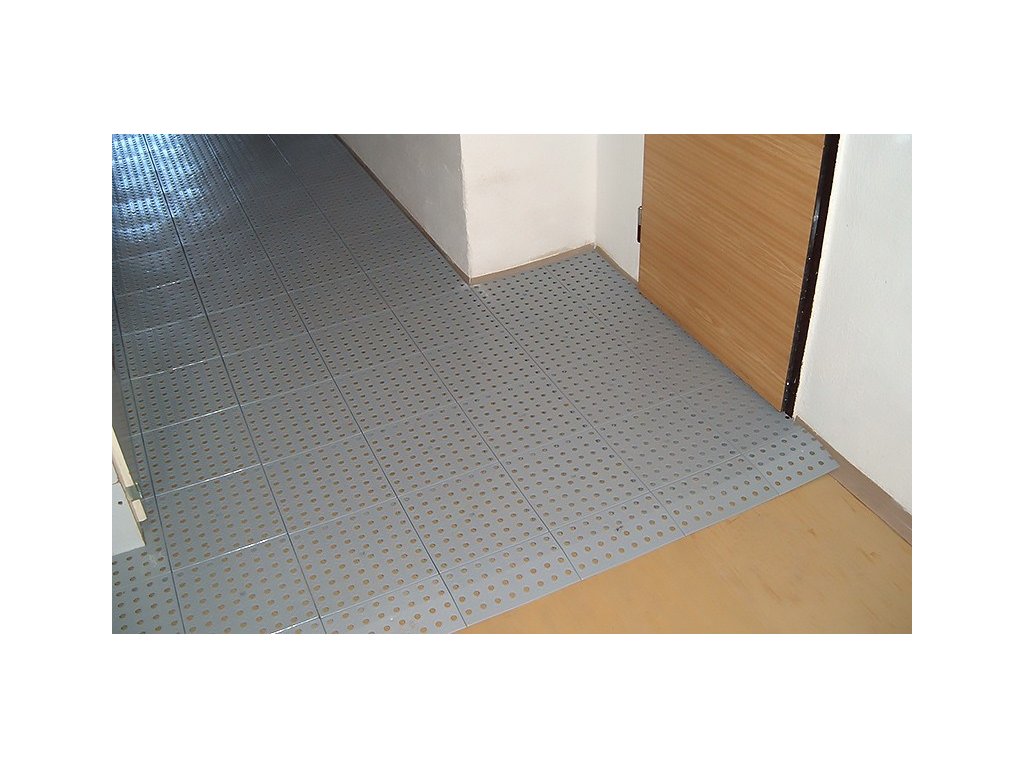 Elementárním prvkem systému je deska 250x250mm. Provedení povrchu všech dílů je protiskluzové, v povrchu jsou otvory o průměru 12mm, výška desek je 16mm. Vytvoření nájezdových hran se řeší pomocí rovného a rohového nájezdu. Jednotlivé díly systému se spojují plastovými spojkami, které jsou v příslušném počtu u každého modulu zahrnuty v ceně. Podlahový systém je možno vrstvit na sebe a tím vytvářet nájezdové rampy různé výšky i délky.