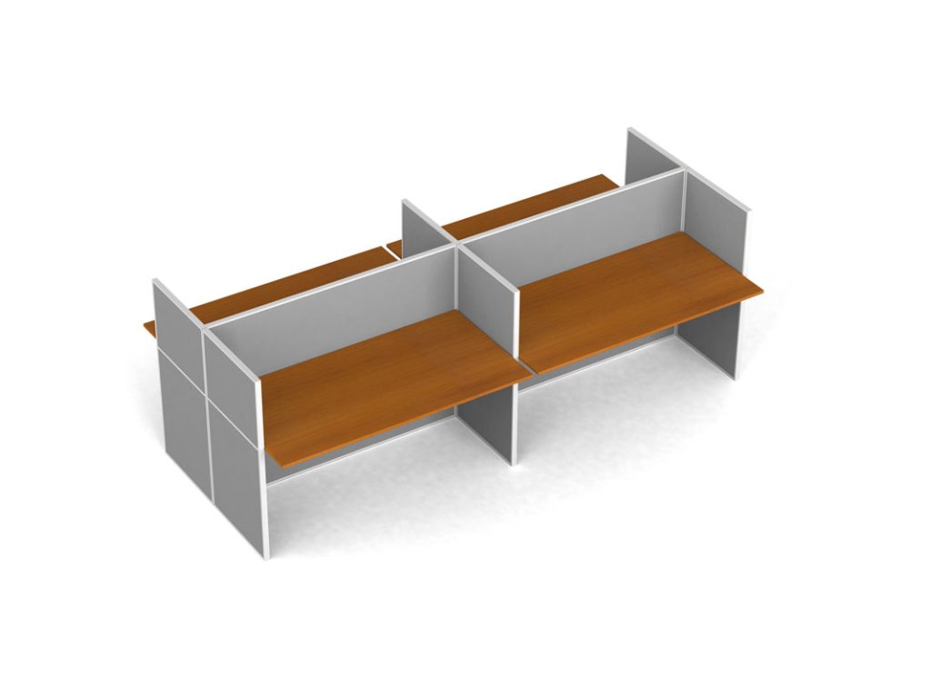 Kancelářský stůl PRIMO s paravanem, 4 místa, nástěnka, šedá/třešeň