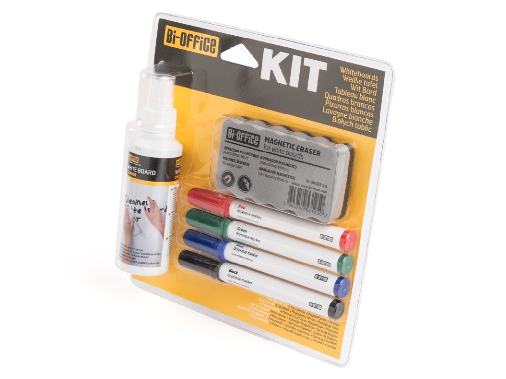 - obsahuje: 4 popisovače, 1 suchý a 1 tekutý čistič tabulí ve spreji 125 ml