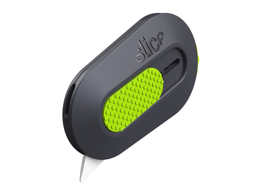 Mini cutter Slice funguje výborně jako bezpečnostní nůž na krabice, kapesní nůž nebo víceúčelový kuchyňský nástroj. Jeho samozatahovací čepel výrazně snižuje riziko poranění a díky zabudovanému magnetu můžete mít nástroj vždy po ruce. Tento nožík se prodává s vyměnitelnou zaoblenou bezpečnostní čepelí. Je vhodný pro praváky i leváky; levorucí uživatelé musí pouze přesunout čepel na druhou stranu, než začnou nůž používat. Čepel nožíku je nejiskřivá, chemicky netečná a nepodléhá korozi. Stejně jako všechny čepele Slice vydrží až jedenáctkrát déle než ocel.
