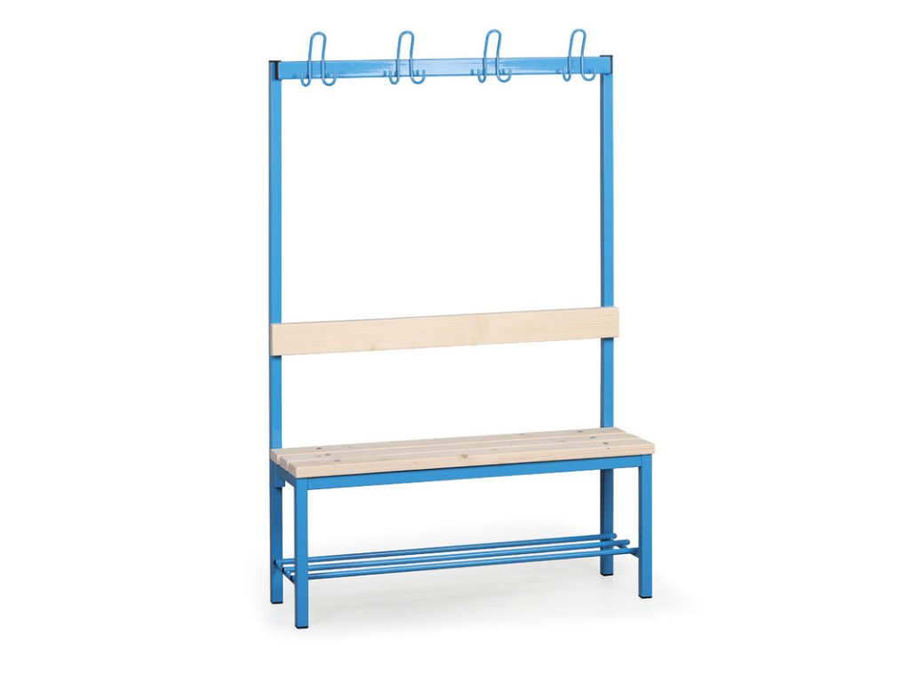 Šatní lavice s věšákem a botníkem, sedák - latě, délka 1000 mm, modré nohy