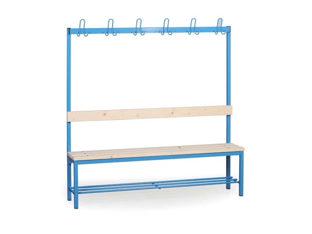 Šatní lavice s věšákem a botníkem, sedák - latě, délka 1500 mm, modré nohy