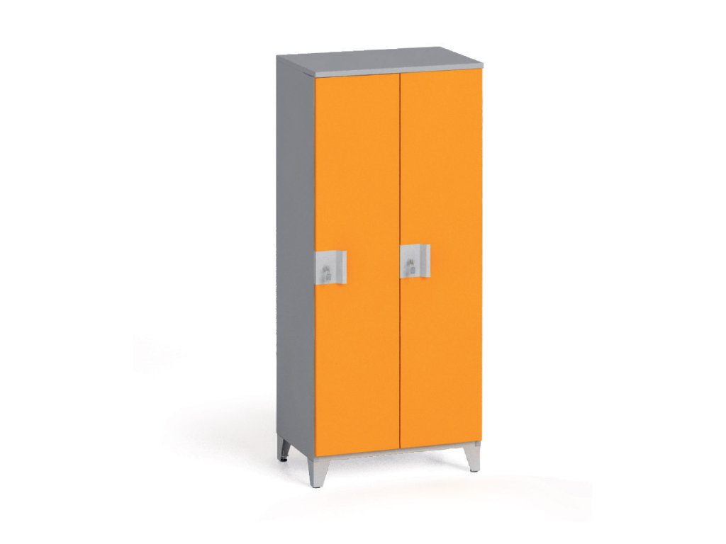 Šatní skříňka S4, 2 oddíly, 1400 x 600 x 400 mm, demont, otočný zámek, šedá/oranžová