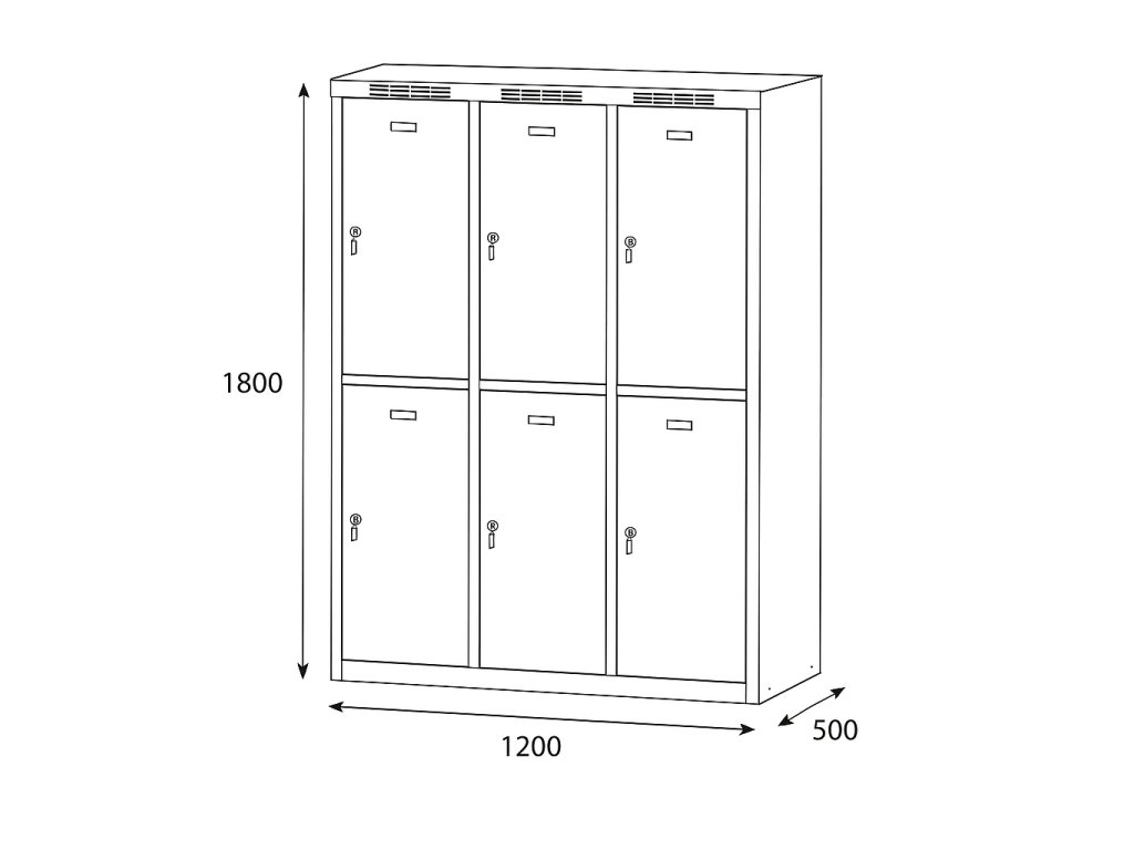 Skříňku s šířkou 400 mm tvoří 6 uzamykatelných boxů. Každý box poskytuje dostatek místa pro uložení osobních věcí, batohů či tašek. Toto úsporné a přitom bezpečné, uzamykatelné řešení je ideální všude tam, kde je potřeba šetřit místem a zároveň není nutné zavěšovat delší oděvy.