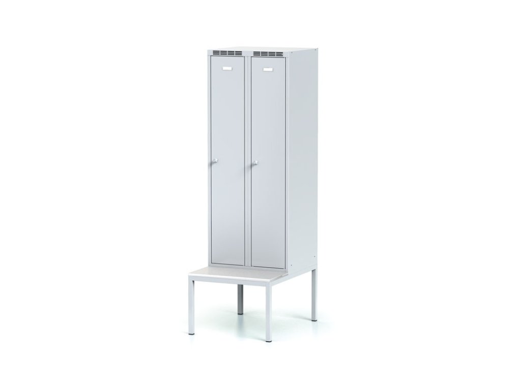 Šatní skříňka S6 s lavičkou, 2 oddíly, 1875 x 600 x 500/800 mm, otočný zámek, šedé dveře