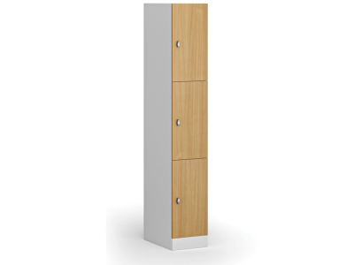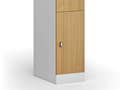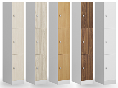 Skříňku s šířkou 300 mm tvoří 3 uzamykatelné boxy. Každý box poskytuje dostatek místa pro uložení osobních věcí, batohů či tašek. Toto úsporné a přitom bezpečné, uzamykatelné řešení je ideální všude tam, kde je potřeba šetřit místem a zároveň není nutné zavěšovat delší oděvy.
