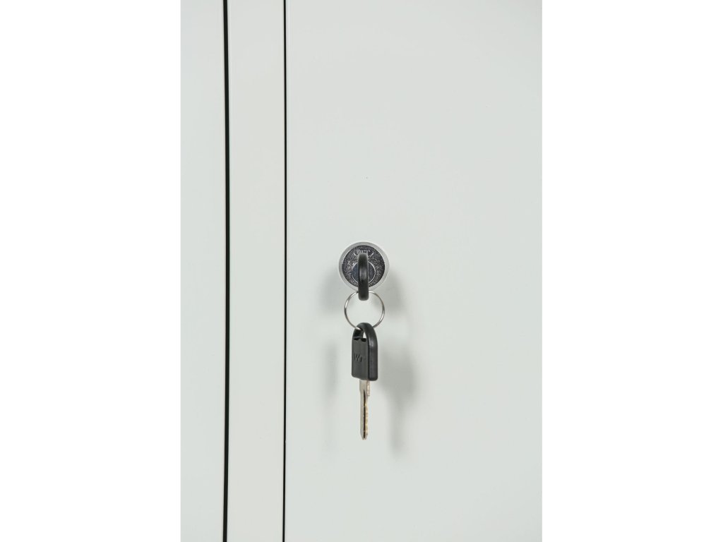 Dveře snadno uzamknete pomocí cylindrického zámku na klíč. Standardně jej dodáváme se 2 klíči v balení. Tento typ zámku je běžnou volbou pro individuálně přidělené skříňky.