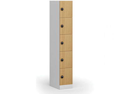 Šatní skříňka s úložnými boxy, 5 boxů, 1850 x 300 x 500 mm, demont, RFID zámek, laminované dveře, buk