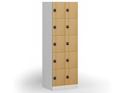 Šatní skříňka s úložnými boxy, 5 boxů, 1850 x 300 x 500 mm, demont, RFID zámek, laminované dveře, buk