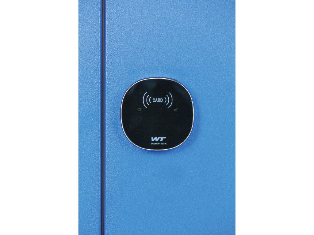 Dveře jsou osazeny RFID zámkem, který umožňuje rychlé a hygienické odemykání. Stačí přiložit kartu nebo čip. Tento systém je ideální při častém střídání uživatelů. Výhodou je i snadná správa přístupových práv – přidávání i odebírání karet probíhá přímo na zařízení. Zámek je kompatibilní s kartami Mifare (13,56 MHz) a napájen baterií CR2450 s dlouhou výdrží. nechybí ani indikátor nízkého stavu baterie. Karty nejsou součástí balení.