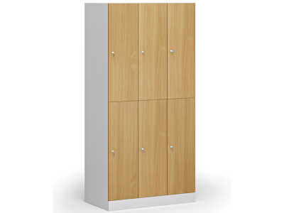 Skříňku s šířkou 300 mm tvoří 6 uzamykatelných boxů. Každý box poskytuje dostatek místa pro uložení osobních věcí, batohů či tašek. Toto úsporné a přitom bezpečné, uzamykatelné řešení je ideální všude tam, kde je potřeba šetřit místem a zároveň není nutné zavěšovat delší oděvy.