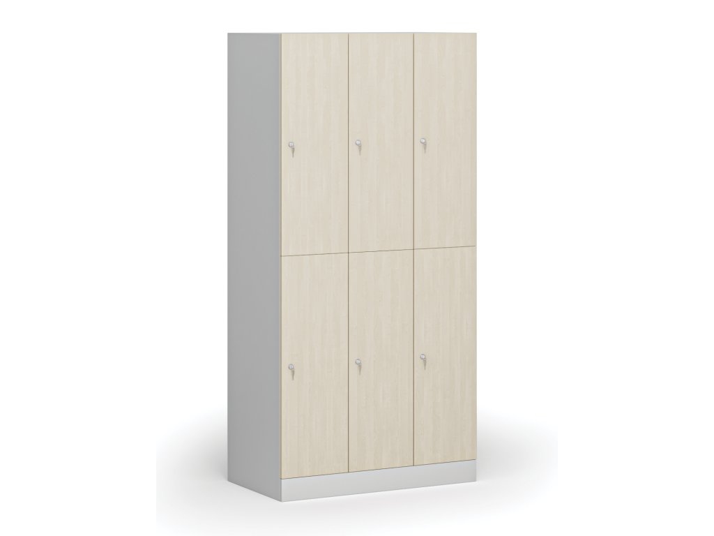 Šatní skříňka s úložnými boxy, 6 boxů, 1850 x 900 x 500 mm, demont, cylindrický zámek, laminované dveře, bříza