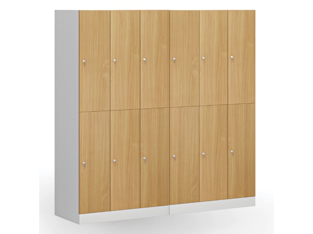 Skříňku s šířkou 300 mm tvoří 6 uzamykatelných boxů. Každý box poskytuje dostatek místa pro uložení osobních věcí, batohů či tašek. Toto úsporné a přitom bezpečné, uzamykatelné řešení je ideální všude tam, kde je potřeba šetřit místem a zároveň není nutné zavěšovat delší oděvy.