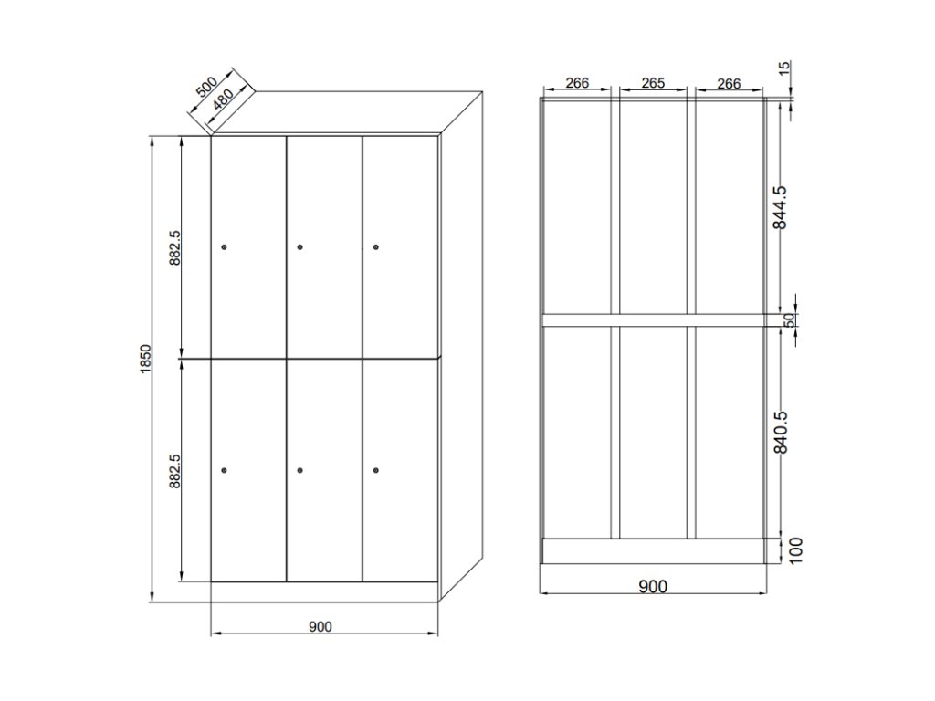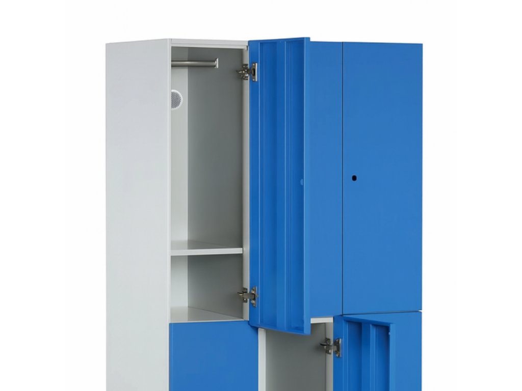 Skříňku s šířkou 300 mm tvoří 6 uzamykatelných boxů. Každý box poskytuje dostatek místa pro uložení osobních věcí, batohů či tašek. Toto úsporné a přitom bezpečné, uzamykatelné řešení je ideální všude tam, kde je potřeba šetřit místem a zároveň není nutné zavěšovat delší oděvy.