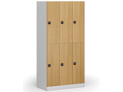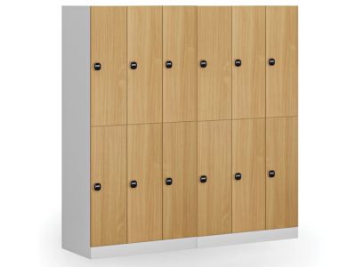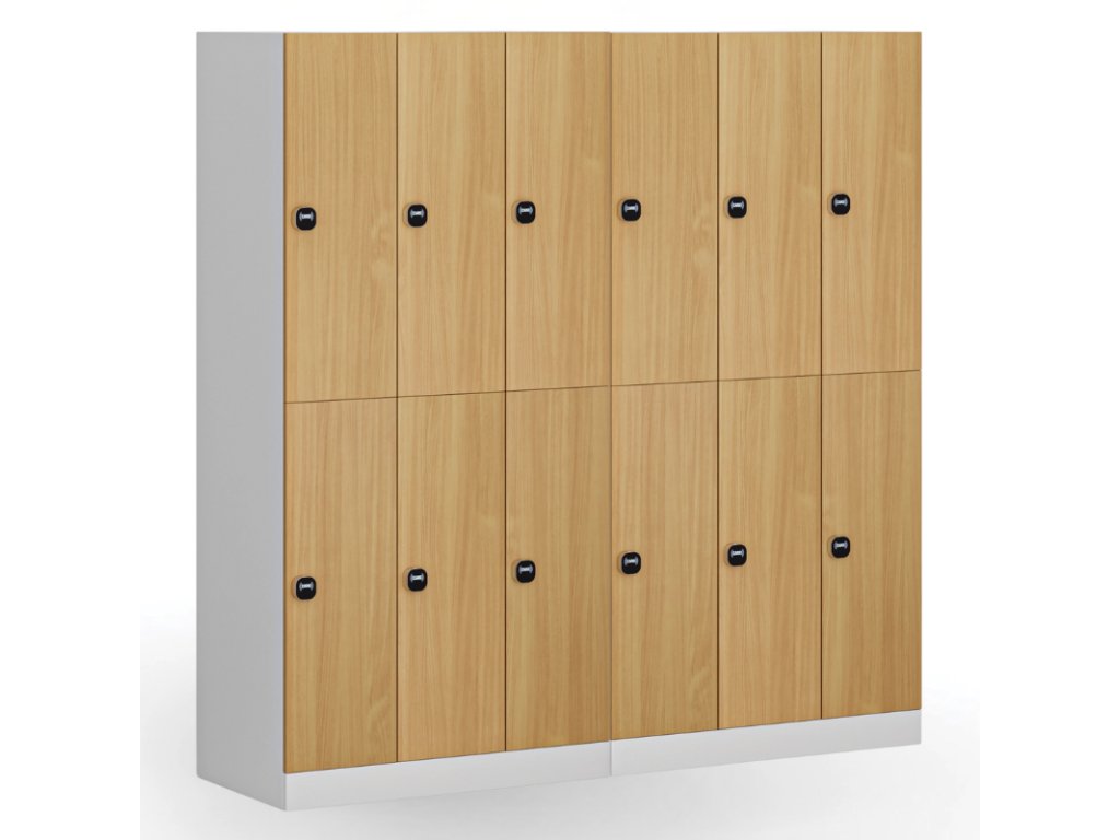 Skříňku s šířkou 300 mm tvoří 6 uzamykatelných boxů. Každý box poskytuje dostatek místa pro uložení osobních věcí, batohů či tašek. Toto úsporné a přitom bezpečné, uzamykatelné řešení je ideální všude tam, kde je potřeba šetřit místem a zároveň není nutné zavěšovat delší oděvy.