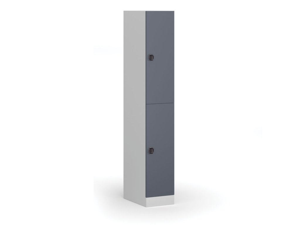 Skříňku s šířkou 300 mm tvoří 2 uzamykatelné boxy. Každý box poskytuje dostatek místa pro uložení osobních věcí, batohů či tašek. Toto úsporné a přitom bezpečné, uzamykatelné řešení je ideální všude tam, kde je potřeba šetřit místem a zároveň není nutné zavěšovat delší oděvy.
