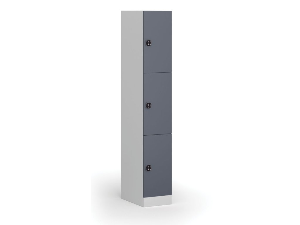 Šatní skříňka S1 s úložnými boxy, 3 boxy, 1850 x 300 x 500 mm, kódový zámek, tmavě šedé dveře