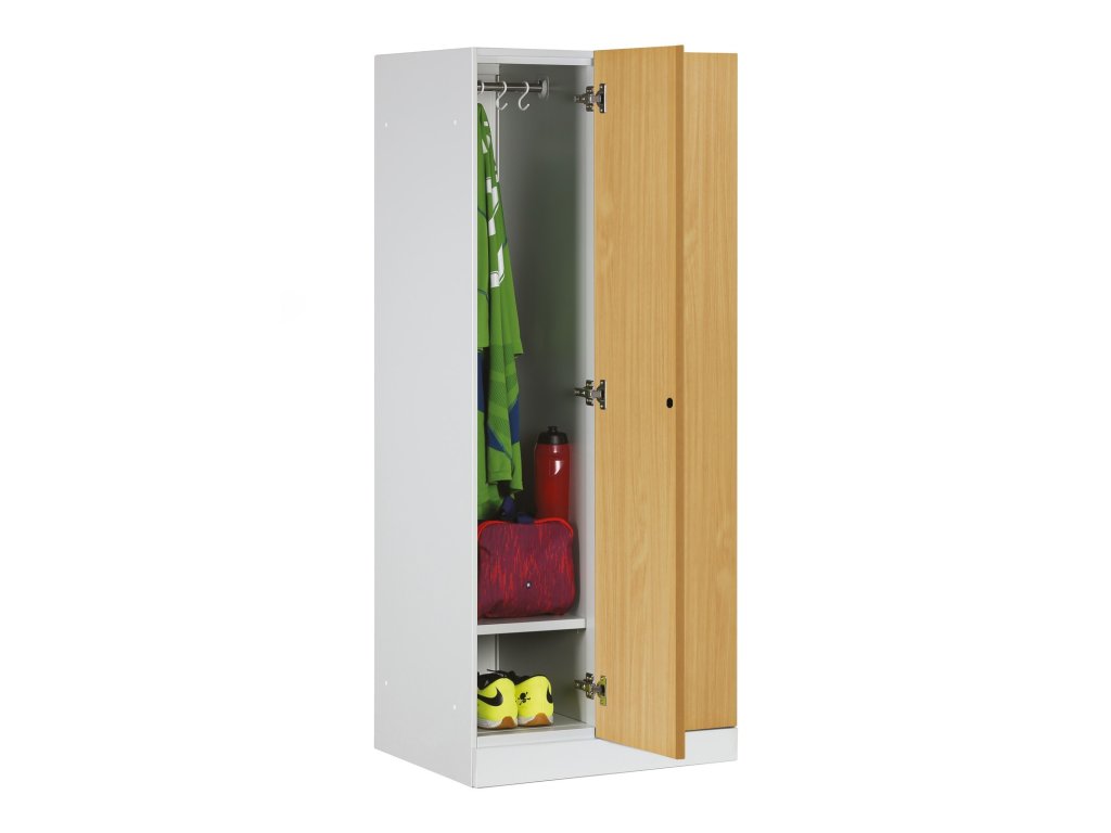 Konstrukce šatní skříňky je lakovaná kvalitním práškovým lakem vždy v odstínu RAL 7035 (šedá). Lak vytváří odolnou, stálobarevnou ochranu proti korozi, odření a usnadňuje údržbu. Standardizovaná barva RAL zajistí, že při opakovaných nákupech nakoupíte vždy stejný odstín. Dveře z laminované dřevotřísky lze vybírat v oblíbených dekorech dřeva i moderních barvách pro snadné sladění s interiérem.