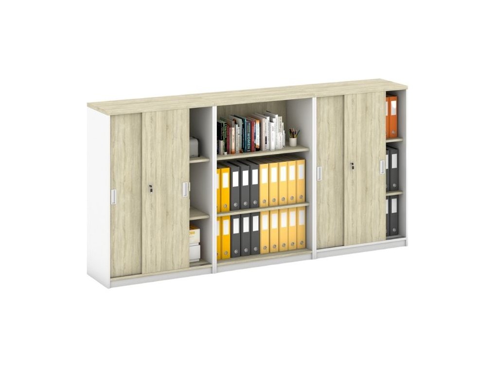 Menší kancelářské sestavy skříní 800 x 400 x 800 a sestavy 800 x 400 x 1200 jsou složeny buď ze zasouvacích či 2-dveřových skříní vždy v kombinaci se skříní otevřenou. Zasouvací skříně navíc můžete umístit i do těsných kancelářských prostor. Dohromady můžete u menších i velkých sestav skříní vybírat až z 10 kombinací.