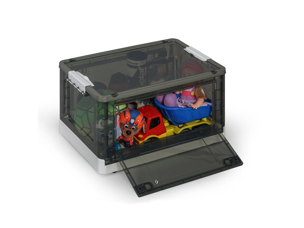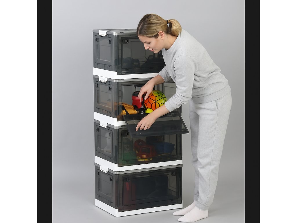 Středně velký plastový box s objemem 43 litrů je skvělým pomocníkem pro skladování v domácnosti i kanceláři. Jeho skládací konstrukce umožňuje jednoduché složení a úsporu místa, když ho zrovna nepotřebujete. Vhodný pro uložení oblečení, nářadí nebo dokumentů.