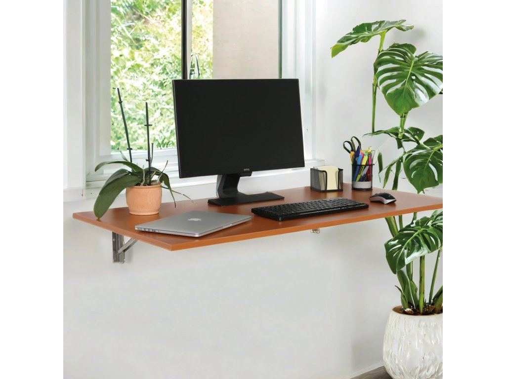 Praktický sklápěcí stůl na zeď s rozměry stolové desky 1200 x 600 mm a tloušťkou 18 mm je ideálním řešením pro menší prostory, kde je potřeba efektivně využít každý centimetr. Stolová deska je pevně uchycena na dvou robustních kovových pantech se sklápěcím mechanismem, který umožňuje snadné sklopení a ušetření prostoru, když se stůl nepoužívá.