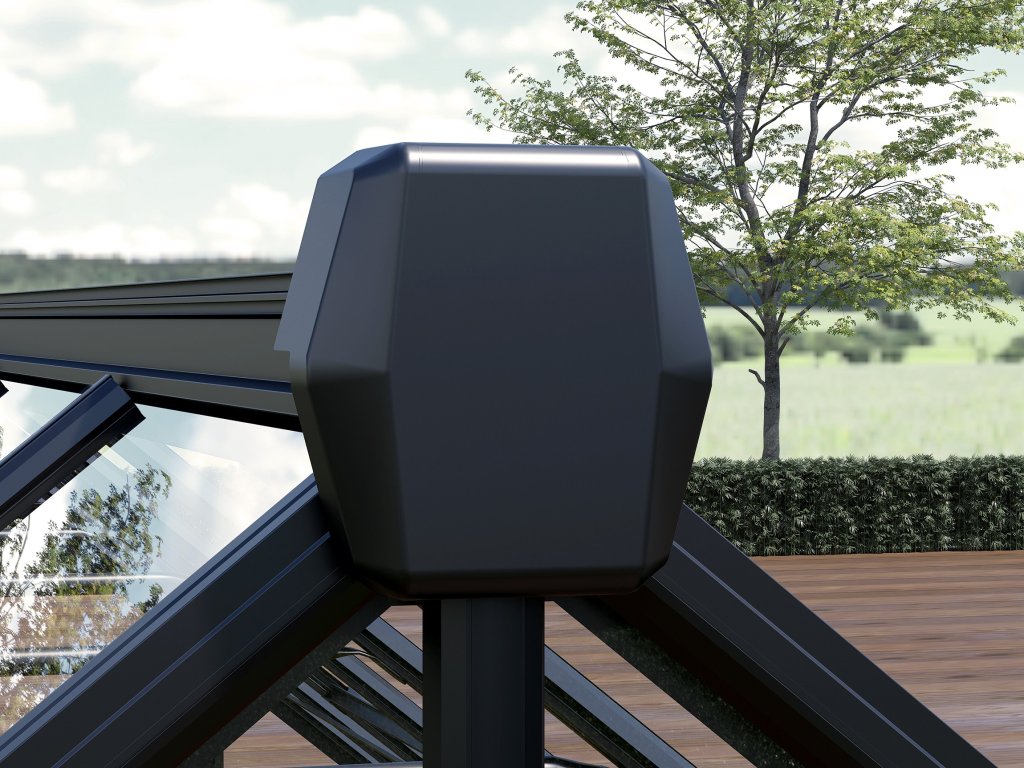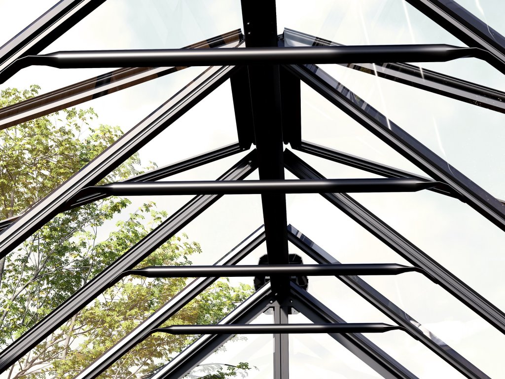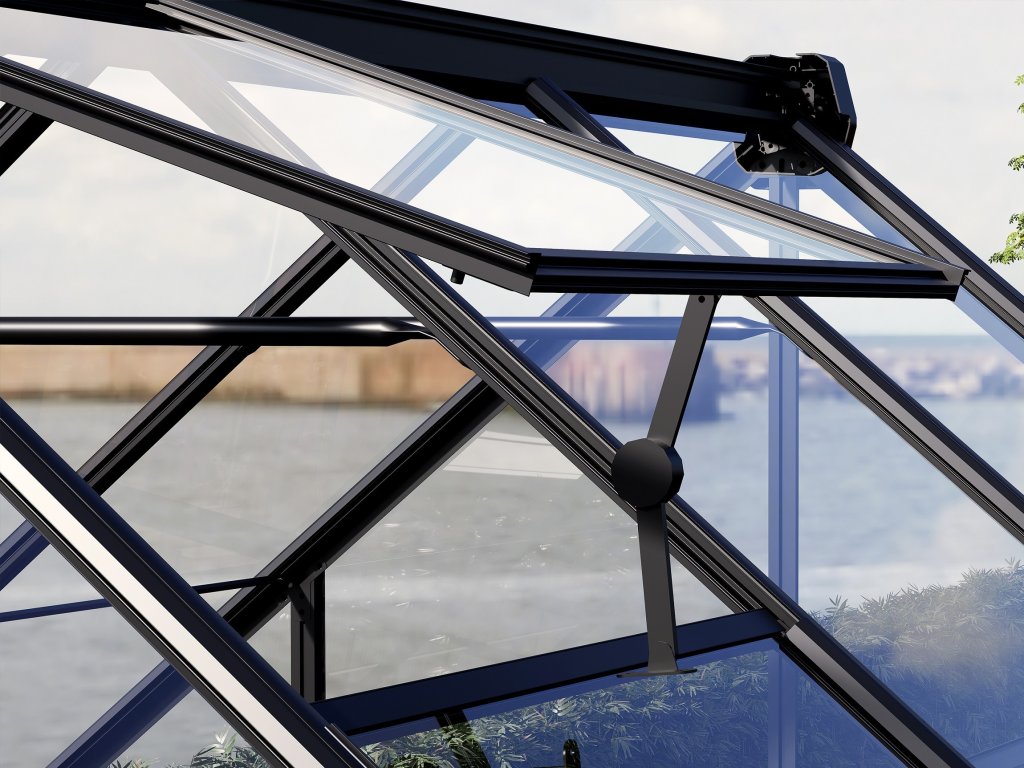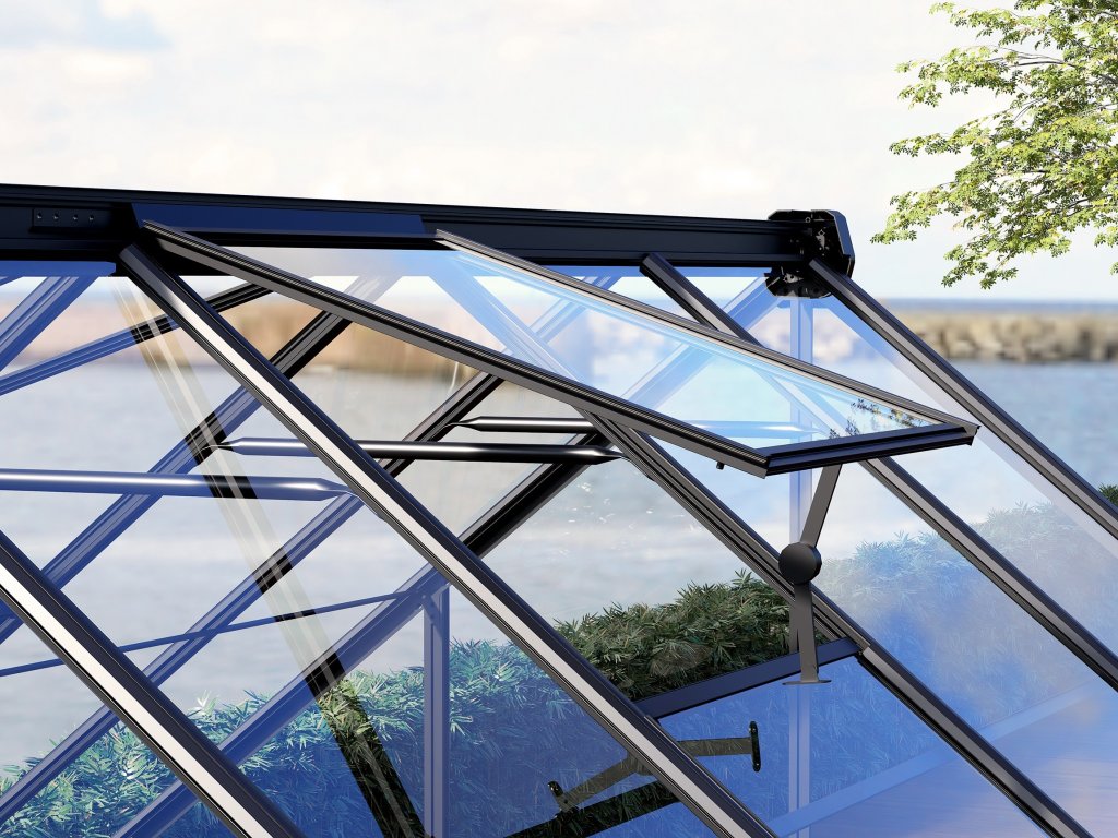 - aby nedocházelo k přehřívání rostlin uvnitř, lze skleník částečně otevírat střešními okny při vysokých venkovních teplotách