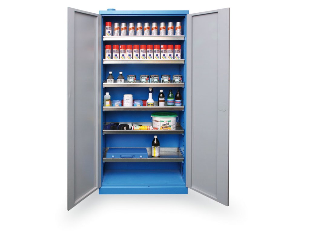 Skříň pro uskladnění nebezpečných chemických látek, 6 polic, nosnost 40 kg, 920 x 380 x 1920 mm