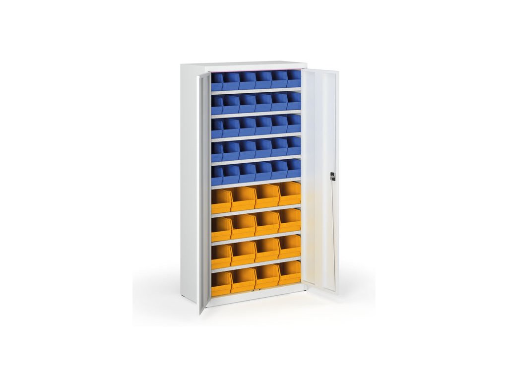 - kovová skříň je vybavena kombinacemi plastových boxů na drobný materiál