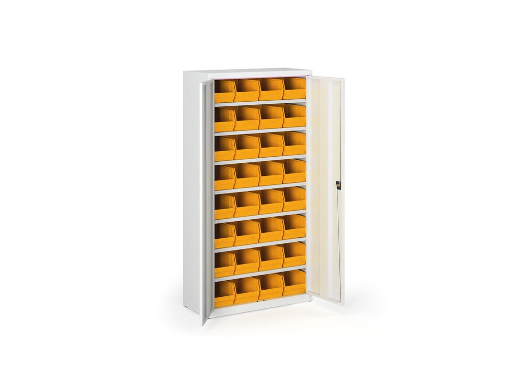 - kovová skříň je vybavena kombinacemi plastových boxů na drobný materiál