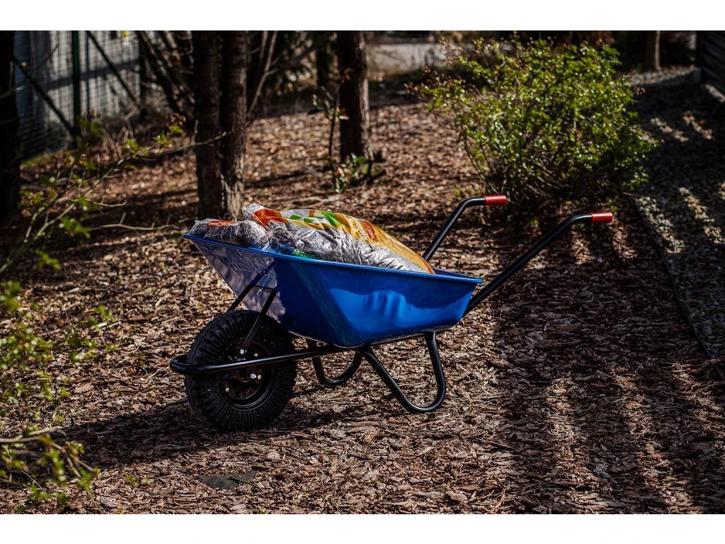 - Odolná korba vyrobena z pozinkovaného plechu s práškovým lakováním v modré barvě (RAL 5017), objem 72 l