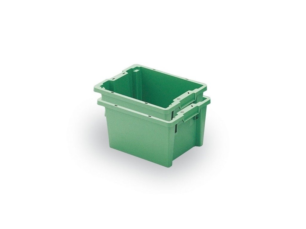 - pokud je přepravka prázdná stačí otočit o 180° a přepravky lze zasunout do sebe a ušetřit při jejich skladování až 70 % prostoru