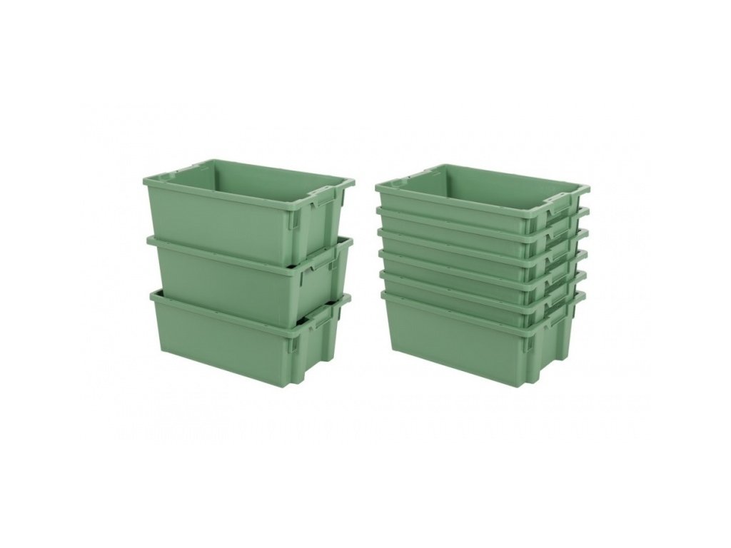 - pokud je přepravka prázdná stačí otočit o 180° a přepravky lze zasunout do sebe a ušetřit při jejich skladování až 70 % prostoru