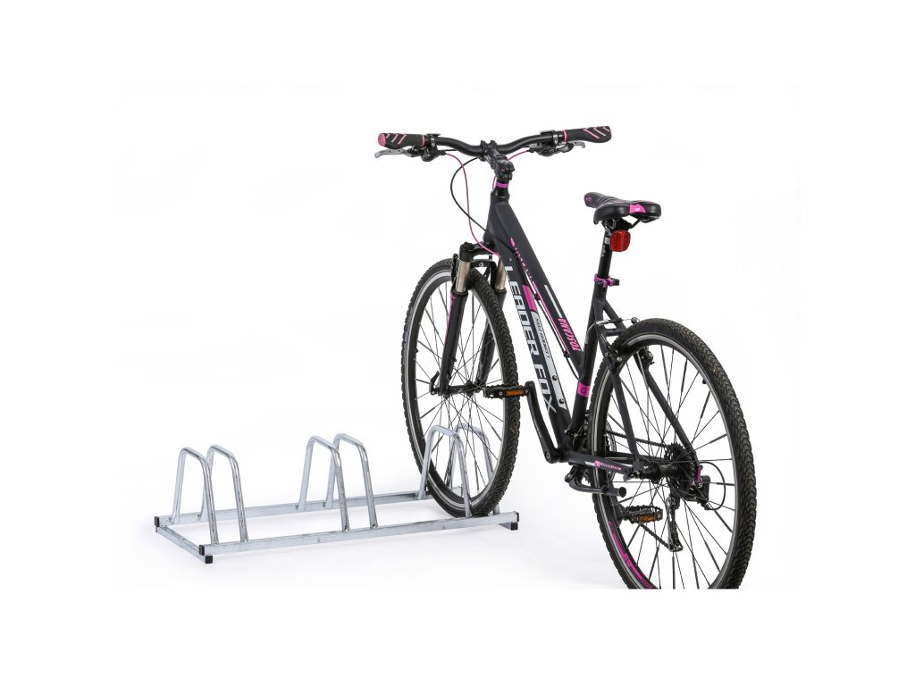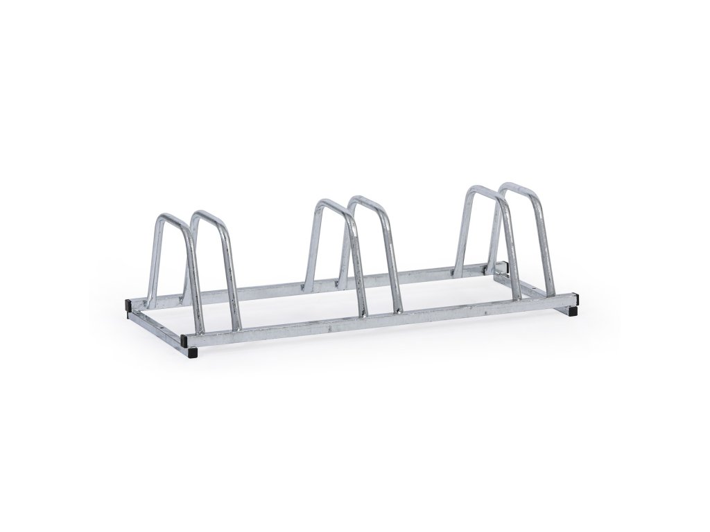 Praktický a odolný stojan pro bezpečné parkování až tří jízdních kol. Díky pevné ocelové konstrukci a žárově zinkované povrchové úpravě je vhodný do exteriérů i interiérů – před budovy, do garáží, sklepů, k firmám nebo do škol. Tři samostatné obloukové držáky umožňují snadné zasunutí kola za přední či zadní kolo. Konstrukce je navržena pro pevné kotvení k zemi.