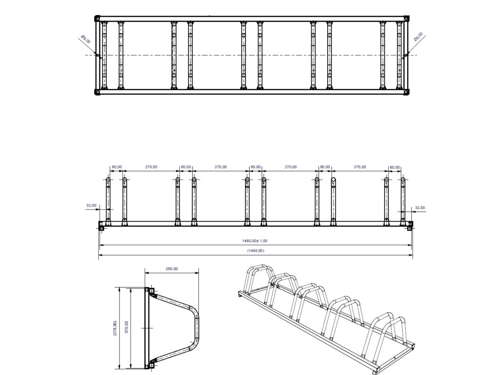 Odolný ocelový stojan s kapacitou až pro pět kol je ideální volbou pro bezpečné a přehledné parkování kol před firmami, školami, garážemi i veřejnými budovami. Konstrukce z pevné oceli s žárově zinkovaným povrchem zaručuje dlouhou životnost a odolnost vůči vlivům počasí. Stojan je vybaven montážními otvory pro pevné ukotvení k zemi a umožňuje zaparkovat kola z obou stran – za přední nebo zadní kolo.