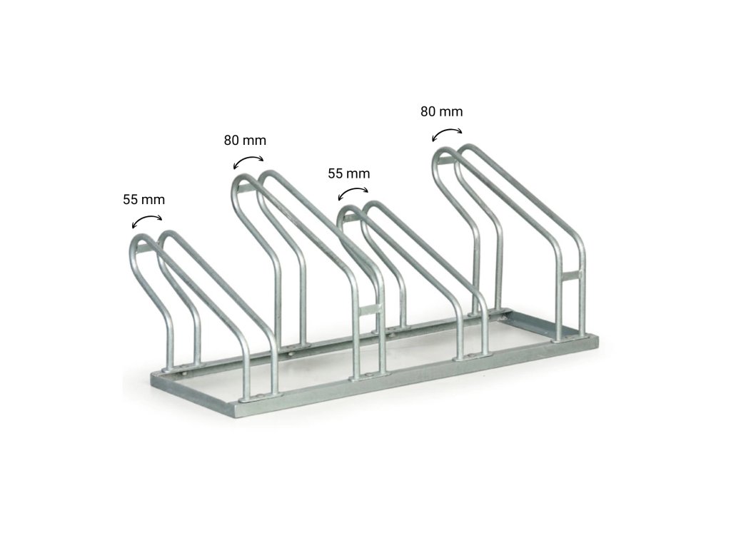 Stojan na jízdní kola, dvě šířky kol 55 a 80 mm, 4 stání