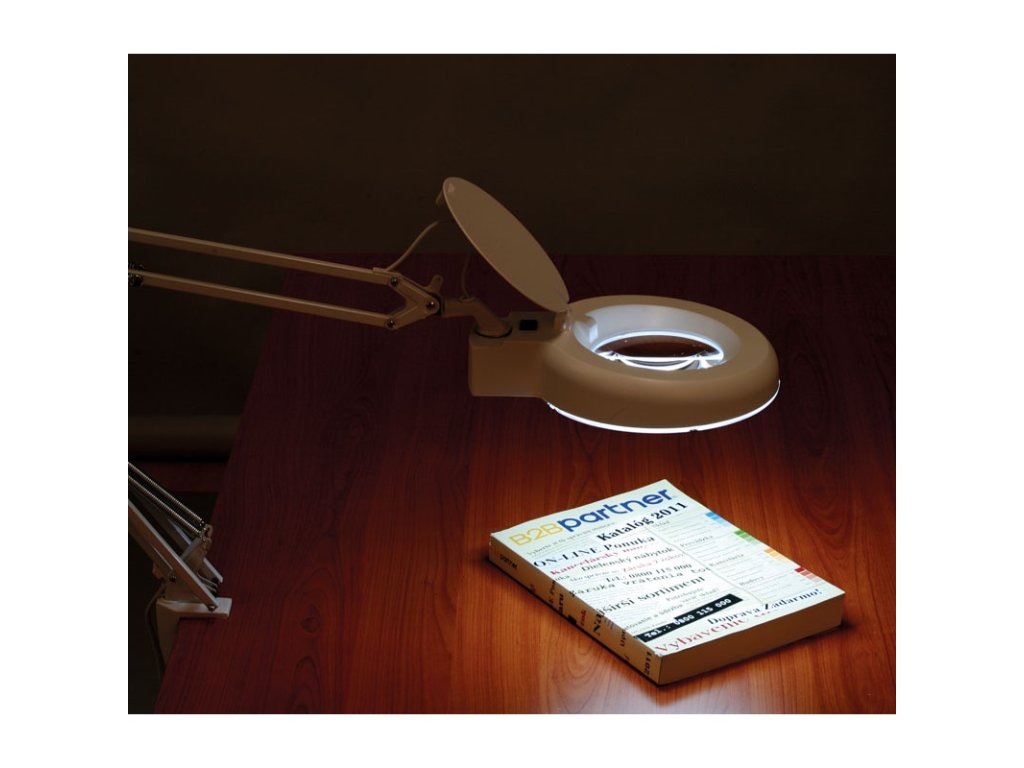 - stolní zvětšovací lupa se skleněnou čočkou a stínidlem z plexiskla PMMA