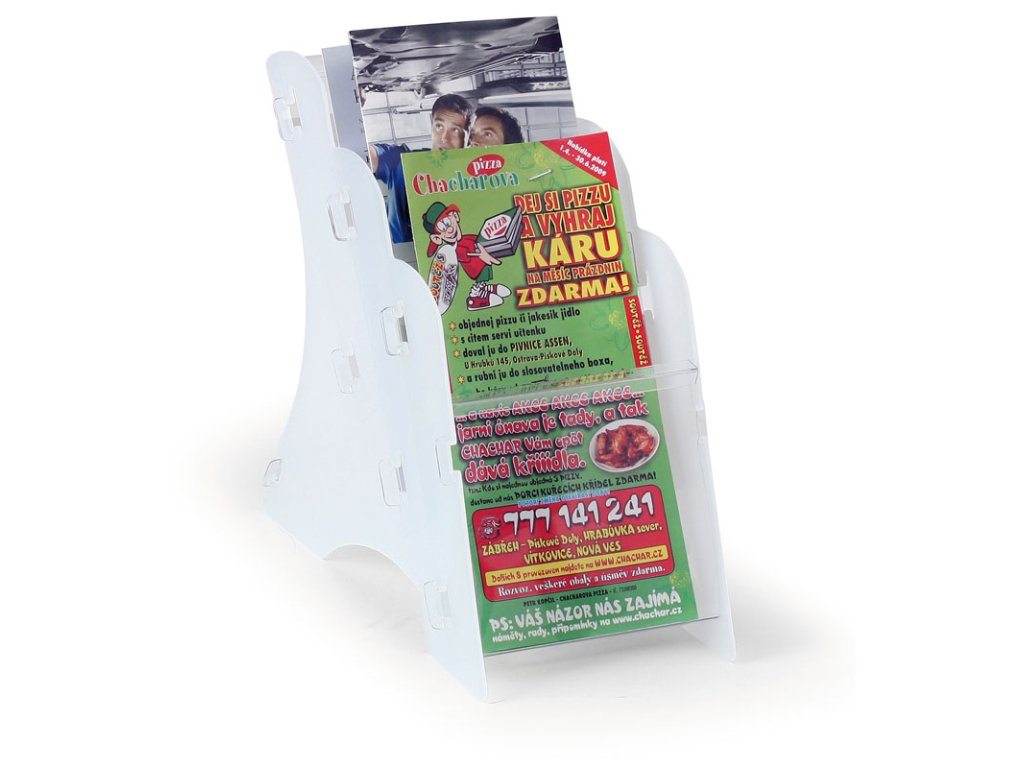 - stolní plastové zásobníky v kapsami A4, A5, DL nebo jejich kombinace