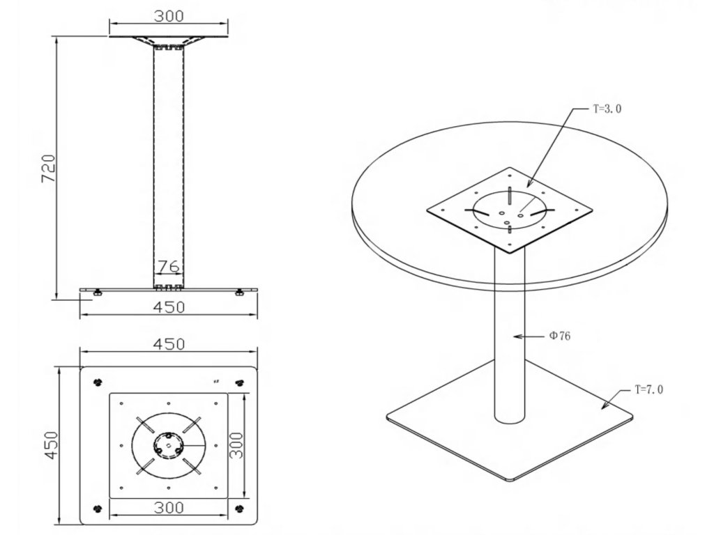 Stolová podnož ENZO, 450 x 720 mm, černá