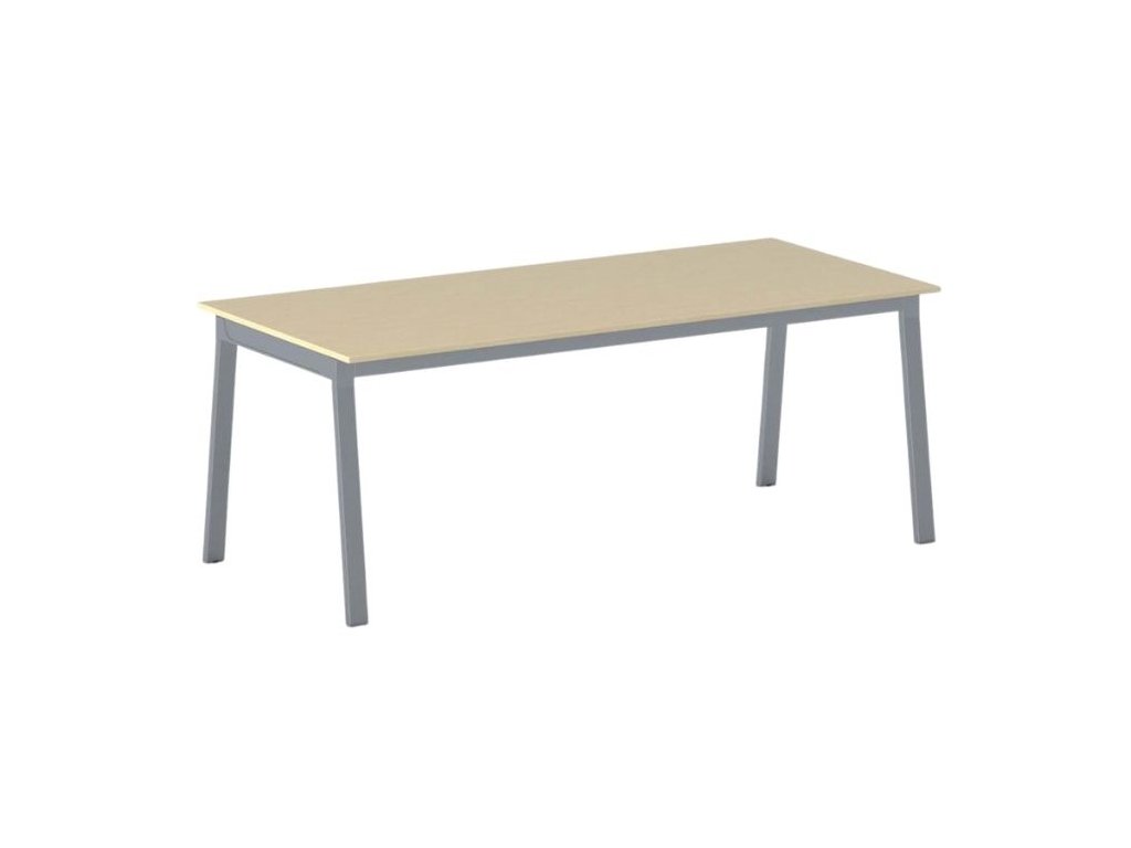 Jednací kancelářský stůl PRIMO BASIC, 200x90 cm, šedostříbrná podnož, bříza