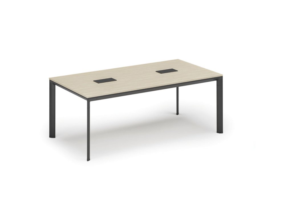 Jednací stůl PRIMO INVITATION, 200x100 cm, bříza + 2x stolní zásuvka TYP I, černá