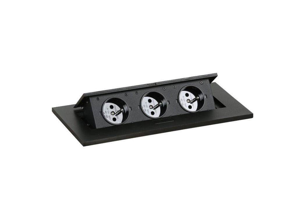 Výklopná zásuvková lišta TYP I integrovaná ve stole je vyrobena ze slitiny zinku a železa. Obsahuje tři elektronické zásuvky s uzemněním (francouzský typ) pro snadné nabíjení zařízení v případě potřeby přímo na pracovní ploše stolu. Dostupná ve stříbrné / černé barvě nabízí elegantní skryté řešení nejen pro kanceláře, konferenční místnosti, ale i knihovny a studovny. Stupeň krytí je IP10.