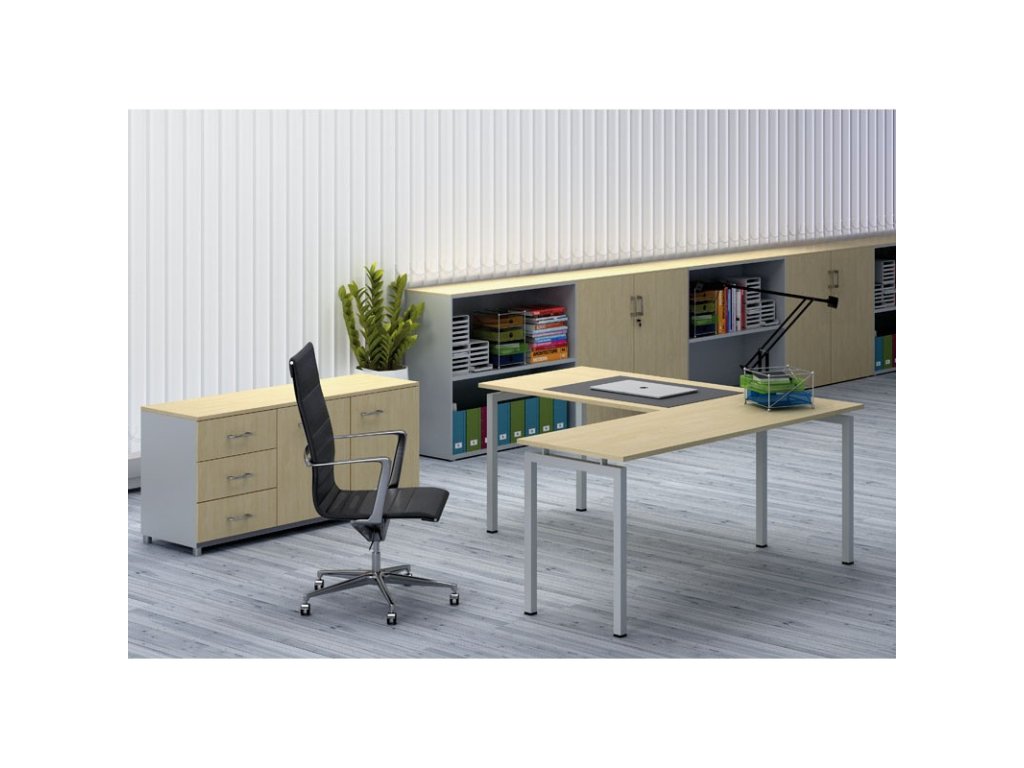 Praktická skříňka ke stolu - komoda skvěle doplní jednací stoly PRIMO o úložný prostor přímo u stolu. Kombinuje v sobě nízkou policovou skříňku a kontejner se 3 zásuvkami. Poskytuje tak dostatek úložného místa nejen pro nejvíce využívané kancelářské dokumenty i pracovní věci.