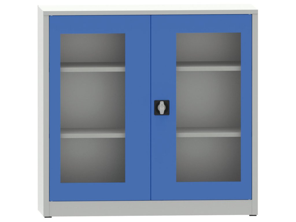 Svařovaná policová skříň s prosklenými dveřmi, 1150 x 1200 x 400 mm, šedá/modrá