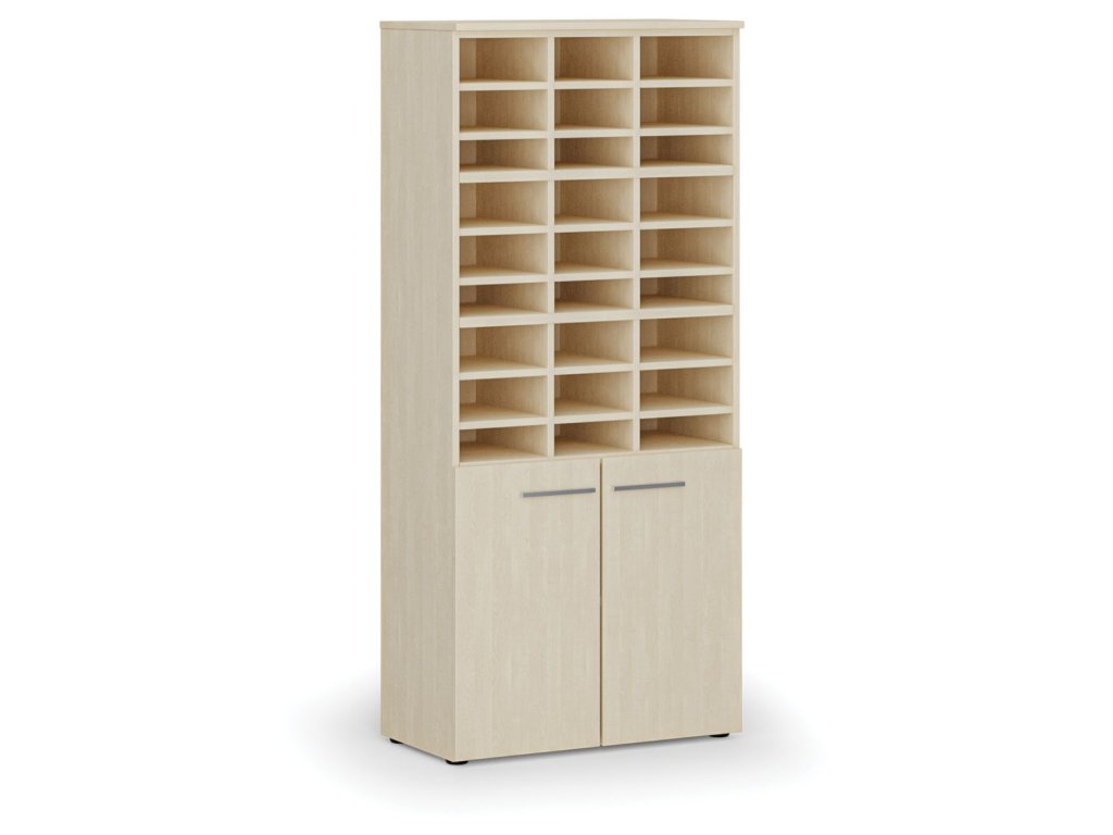 Třídicí regál s dveřmi PRIMO WOOD, 800 x 420 x 1781 mm, 27 přihrádek, bříza