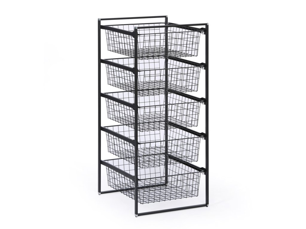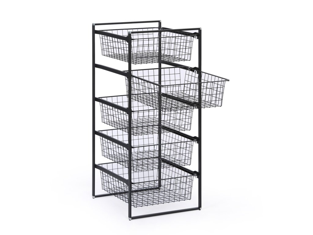 Úložný systém s 5 drátěnými koši, 1040 x 500 x 450 mm, černý