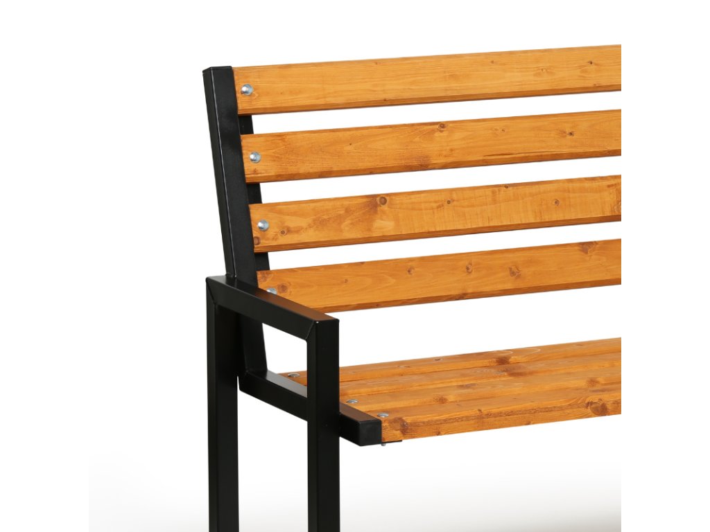 Lavička je vybavena spodními patkami pro kotvení k zemi, což zaručuje pevné a stabilní ukotvení na požadovaném místě. Dřevěné smrkové fošny o průřezu 8 x 3,5 cm dodávají lavičce příjemný a přírodní vzhled a zajišťují vysokou nosnost až 250 kg. Výhodou je komfortní výška sedu 457 mm.