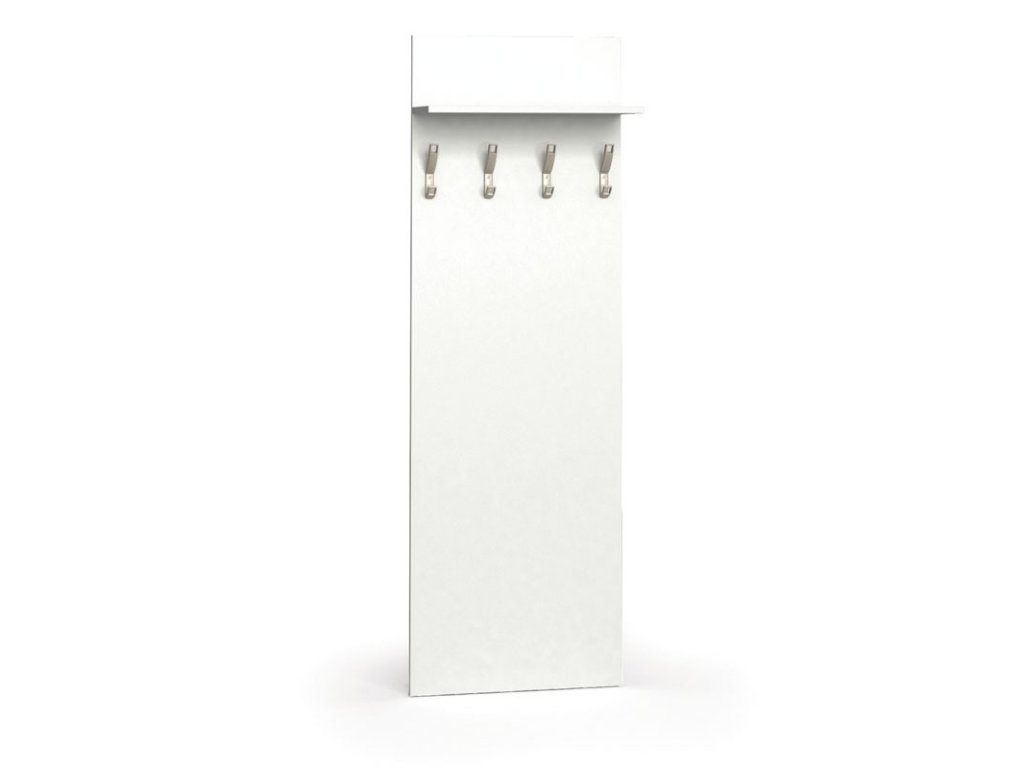 Věšáková stěna HORIZONT, 4 háčky, police, bílá